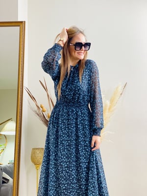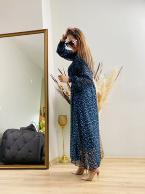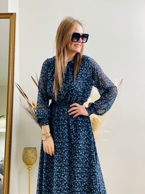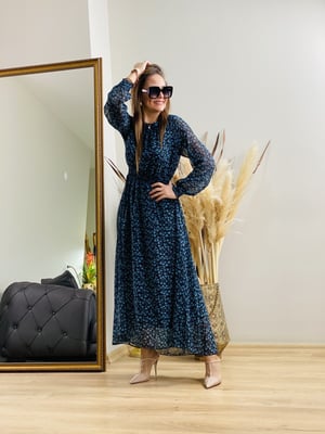 Siyah Desenli Şifon Elbise