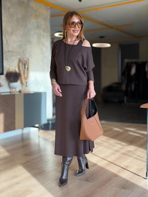 Bluzlu Modal Kahve Elbise