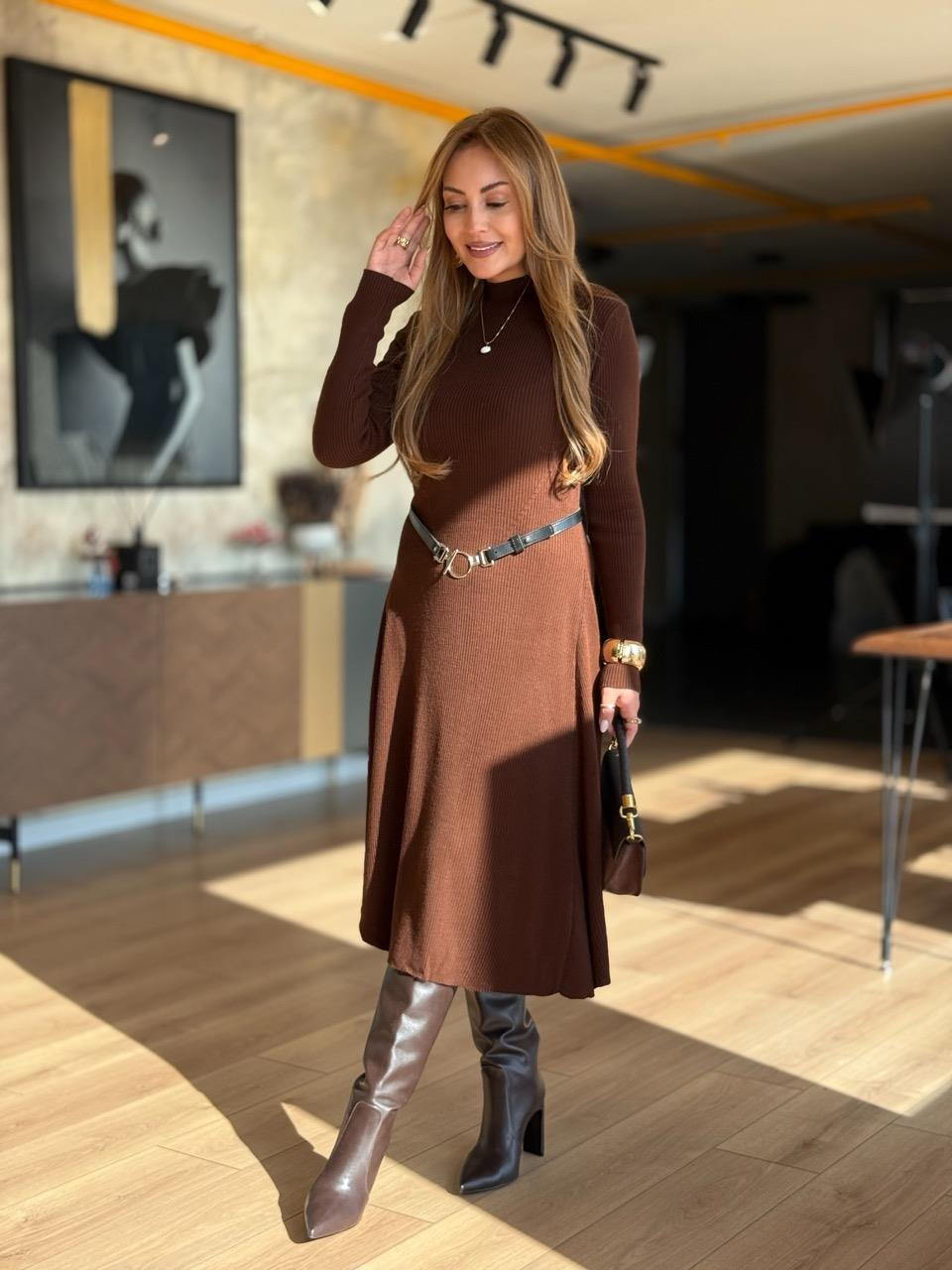Kemerli Siyah Midi Boy Triko Elbise Kemerli Vizon Midi Boy Triko Elbise Kemerli Bordo Midi Boy Triko Elbise
