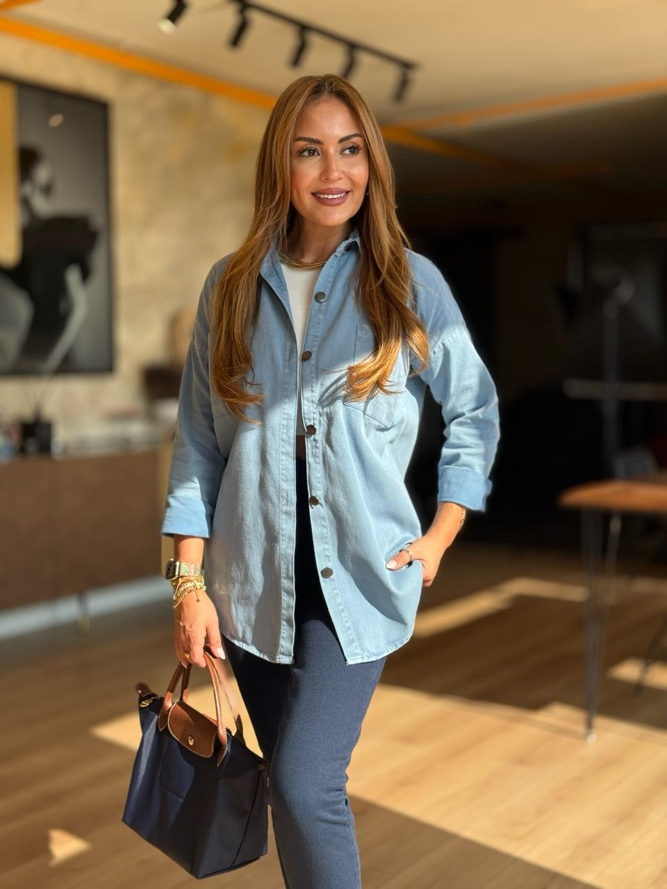 Mavi Yıkamalı Gabardin Gömlek