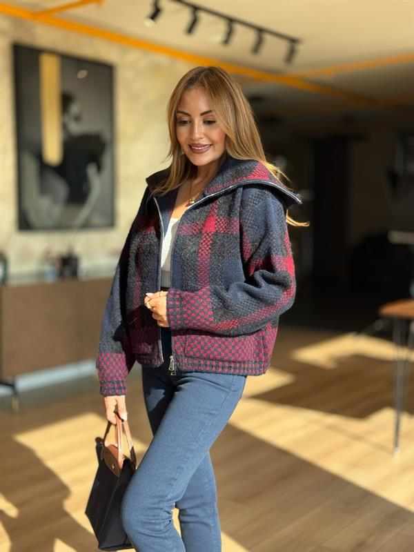 Premium Büyük Yaka Fermuarlı Lacivert Bordo Hırka Ceket