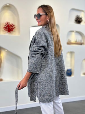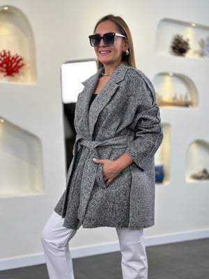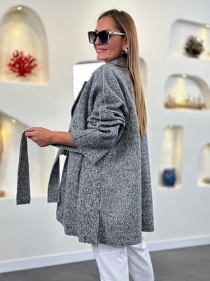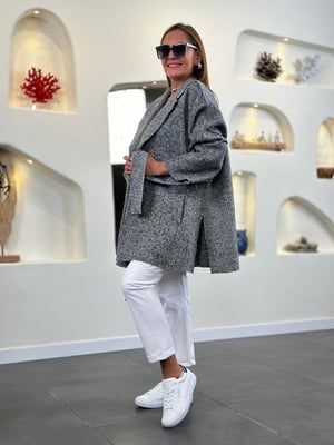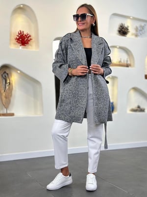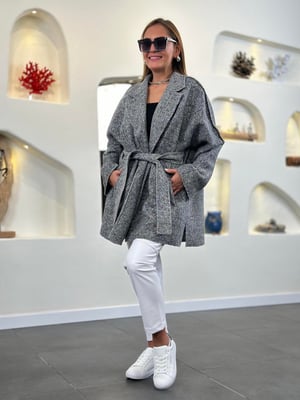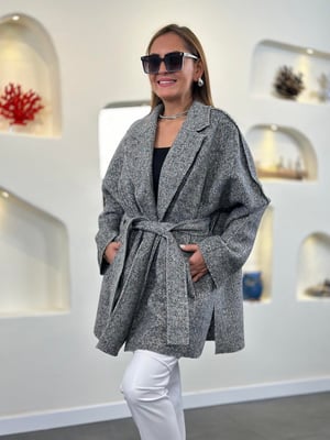 Harika kaşe ceketlerimiz geldi. Tarzı duruşu gerçekten mükemmel bir ürün. Chanel kaşe kumaş diye geçiyor çok güzel detaylar var. İçinde küçük renkli parçalar var. Gözü asla rahatsız etmeyen genel olarak antrasit rengindedir. Kocaman yakalara sahip belinde kendine ait bir kuşağı var. İsterseniz bağlayarak isterseniz önü açık kullanabilirsiniz. İki yanında cep detayı var. Salaş ve rahat. Kendi kumaşından kesikli detaylar kullanılmış. Bu kaşemizde small medium Large ve XL bedenlerimiz mevcuttur. XL bedeni olan ürünü bir üst beden tercih edebilir. Tasarım bir ürün Bu rengimizde web sitemize ekleniyor.
